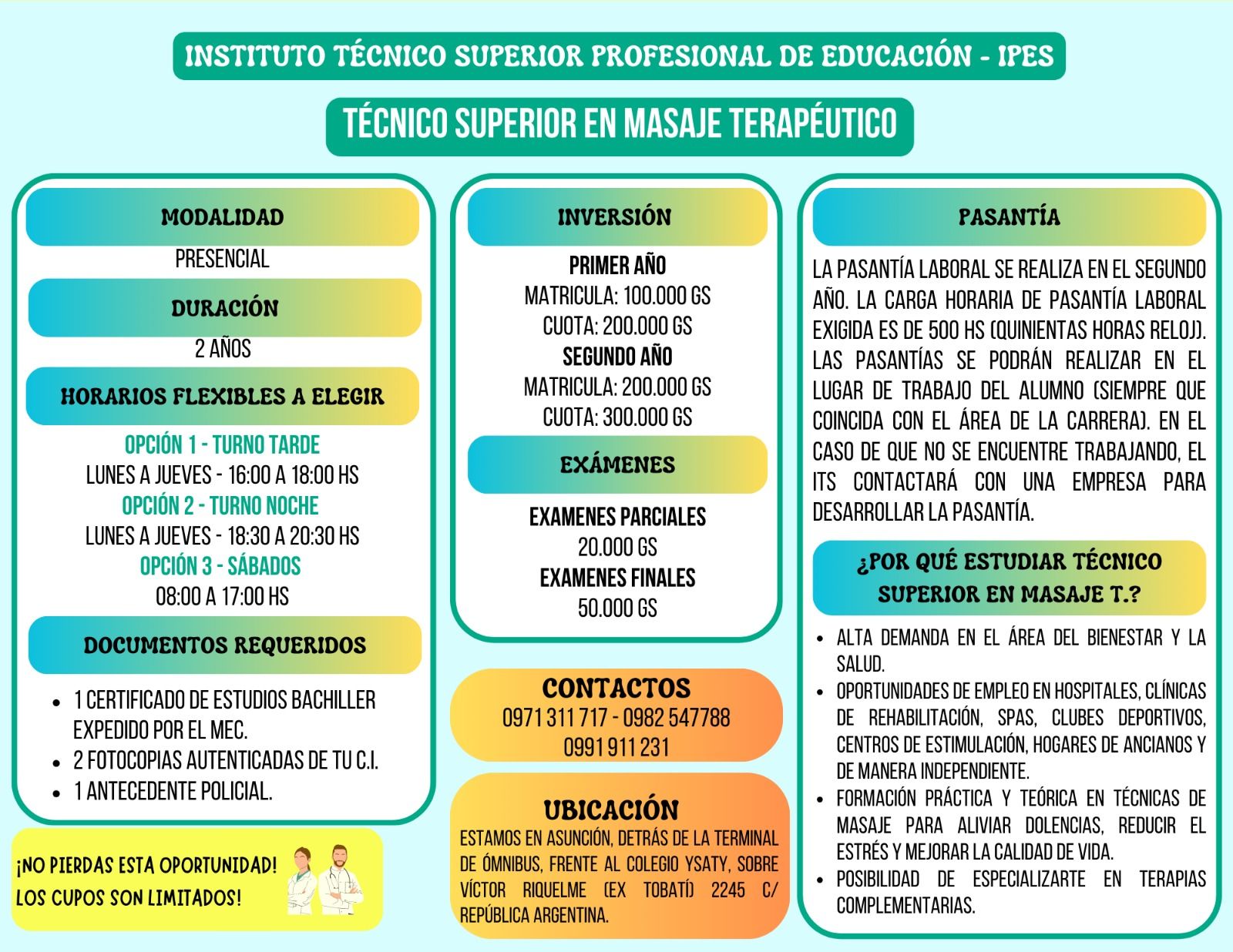 MASAJE TERAPÉUTICO - FARMACIA - RADIOLOGIA